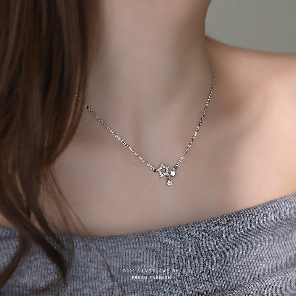 Indulge in pure elegance with our 925 sterling silver star shaped zircon inlaid necklace. Made with high quality materials, this necklace adds a touch of sophistication to any outfit. Perfect for all occasions, its star design and sparkling zircon stones will capture everyone's attention. Elevate your style with this must-have accessory!
